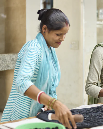 All women employed at The Gratitude Factory are paid a living wage, sick leave and holiday leave. They are provided weekly meals, time for daily puja, free medical care, and an emergency medical fund for them and their families.
